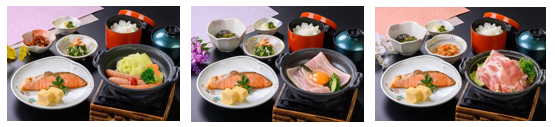 和朝食は、種類の日替わりメニューを用意し、陶板を使用して出来立てをお客様に楽しんで頂けます。また、地産食材を使用した豚汁もおすすめです。さらに、2種類の朝茶漬けを用意し、三重県産の真鯛や松阪牛を使用することで、連泊のお客様にも喜ばれる贅沢な味わいを提供していきます。