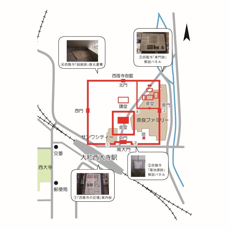 奈良市北部にある近鉄西大寺駅の北口には、奈良時代の称徳天皇が造営した尼寺、西隆寺がありました。現在は、サンワシティ、ならファミリーのほか、銀行やテナントビルとなり、往時の姿を目にすることはできませんが、駅前の開発が始まった1971年(昭和46)以来、数度にわたる発掘調査の結果、西隆寺の伽藍がかなりの程度あきらかになりました。