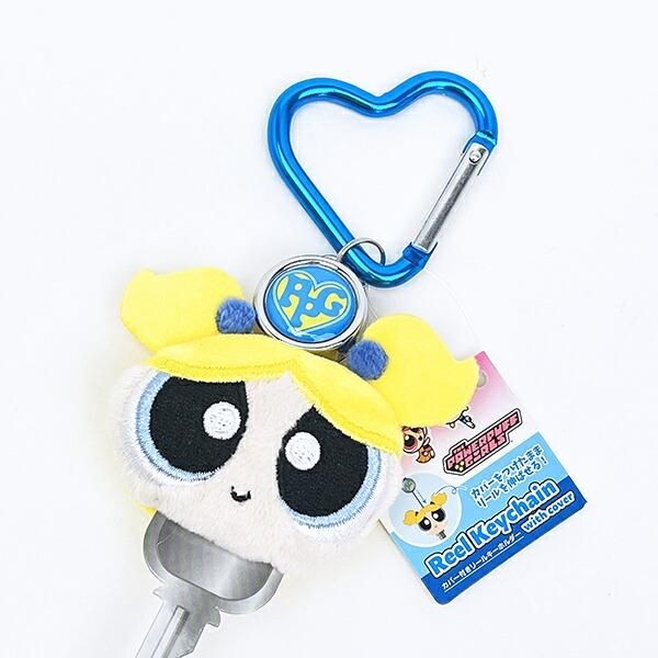 リール付きだから伸ばして使える。パワパフのキーカバー付きキーホルダー