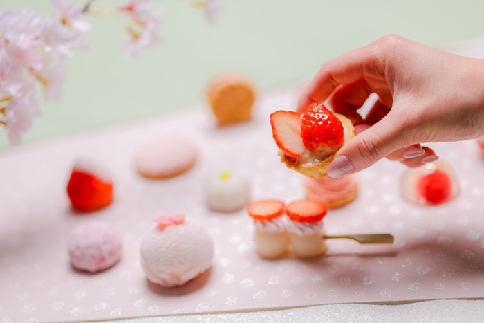 旬のいちごを中心に使用し、ピンクカラーのスイーツがとにかくキュート。一口サイズで女性にも食べやすく、様々な箇所にパティシエのこだわりが詰まっています。