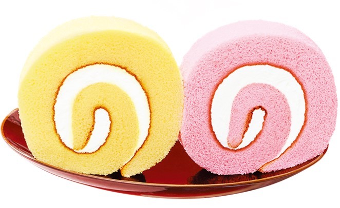 内容 :赤と白のロールケーキの2個入りです。赤い生地には苺の濃縮果汁を配合しています。卵白を配合した軽い食感のしっとり生地が特長です。クリームをたくさん味わえる巻き方に工夫をしました。