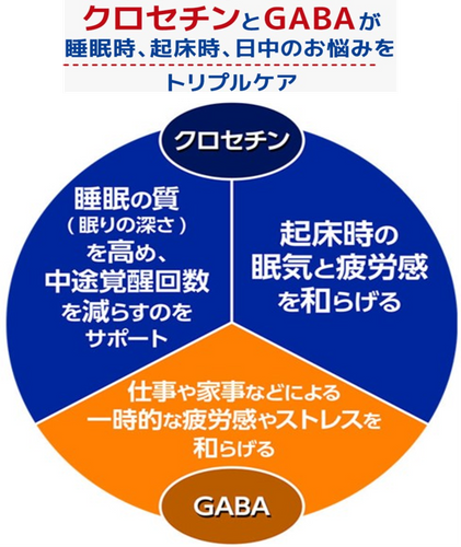 本品にはGABAが含まれています。 GABAには、一時的に落ち込んだ気分を前向きにする(積極的な気分にする、生き生きとした気分にする、やる気にするなどの)機能があることが報告されています。また、仕事や家事などによる一時的な疲労感やストレスを和らげる機能があることが報告されています。
