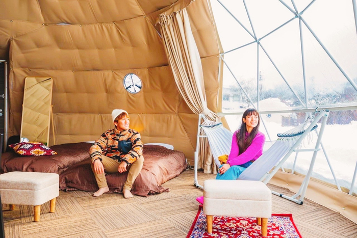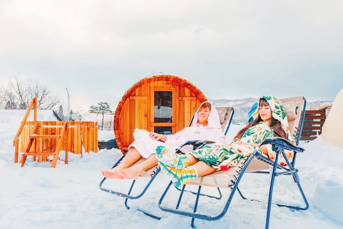 『サウナ好き心をくすぐるプライベートサウナ付きプランで、ロウリュや薪をくべるのも自分達でやらせてもらえるので思う存分楽しめました。ドーム型のテントからは白馬三山が見え、早朝に外に出ると一面雪野原、朝日が雪を照して、小鳥やキツツキの鳴き声がきこえ、とても心が満たされました。』