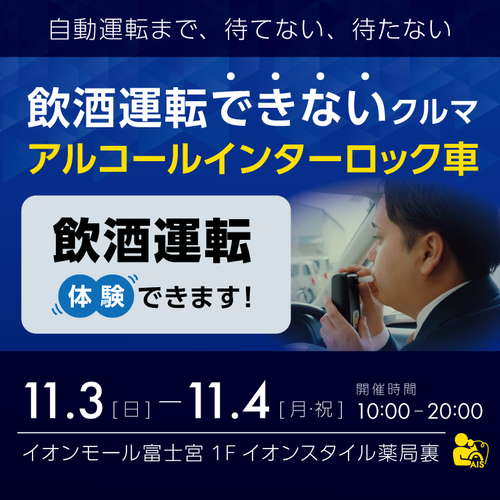 ■『飲酒運転させない車』アルコール・インターロック展示イベント11月3日(日)4日(月・祝)イオンモール富士宮で開催します。