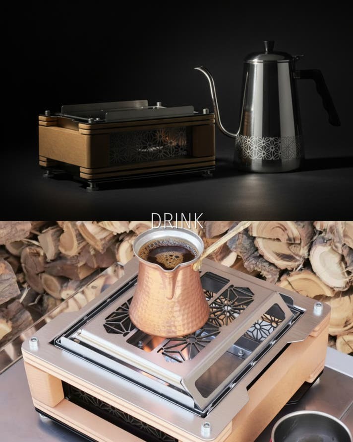 HIBACHIの熱を利用し、器に湯を張って飲み物を温める、古き良き日本のスタイルを現代に再現できます。