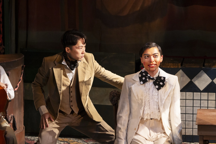 三味線、チェロ、バイオリン、ギター、アコーディオンの生演奏が、過去と現代を行き来します。