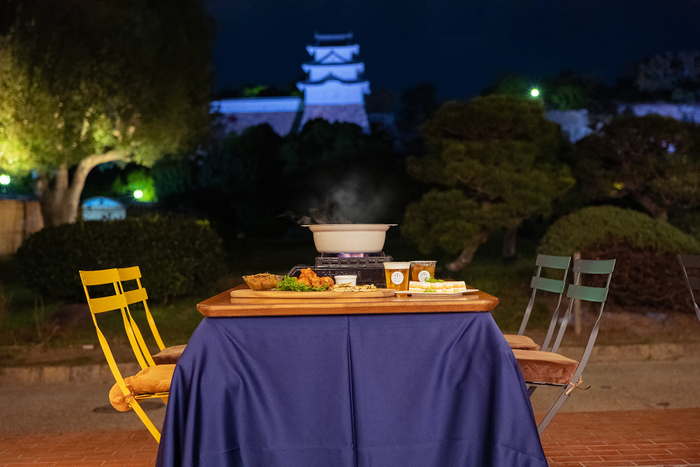 ライトアップされた明石城の櫓を眺めながら、冬の味覚とともに過ごす特別な時間
