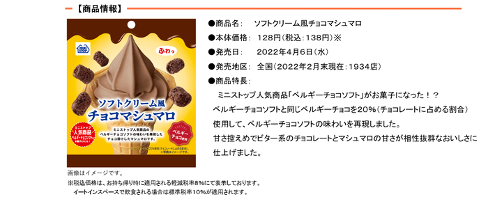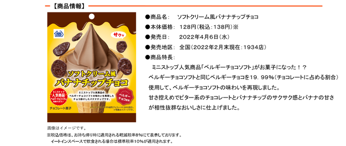 「ソフトクリームバニラ」、「ベルギーチョコソフト」をイメージした菓子、おやつにもお酒のおつまみにもオススメな