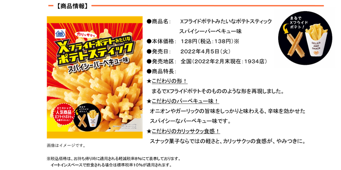 まるでX(エックス)フライドポテトみたい! 「 Xフライドポテトみたいなポテトスティック」 他、オリジナル菓子、計8品発売!! ~4/5(火)、4/6(水)、4/12(火)発売~