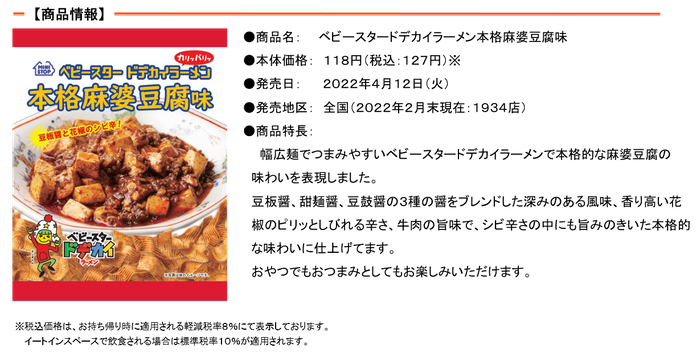 「エビマヨ風スナック」、「ベビースタードデカイラーメン本格麻婆豆腐味」、計8つのミニストップオリジナル商品を発売します。