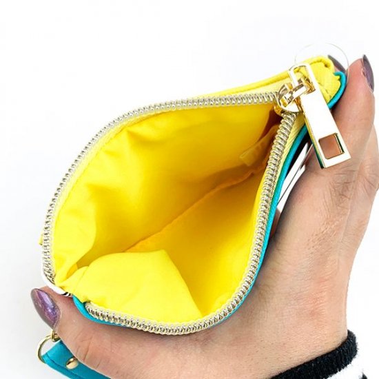 上部にファスナーがあり、コインなどが入れられるポーチにもなっています。