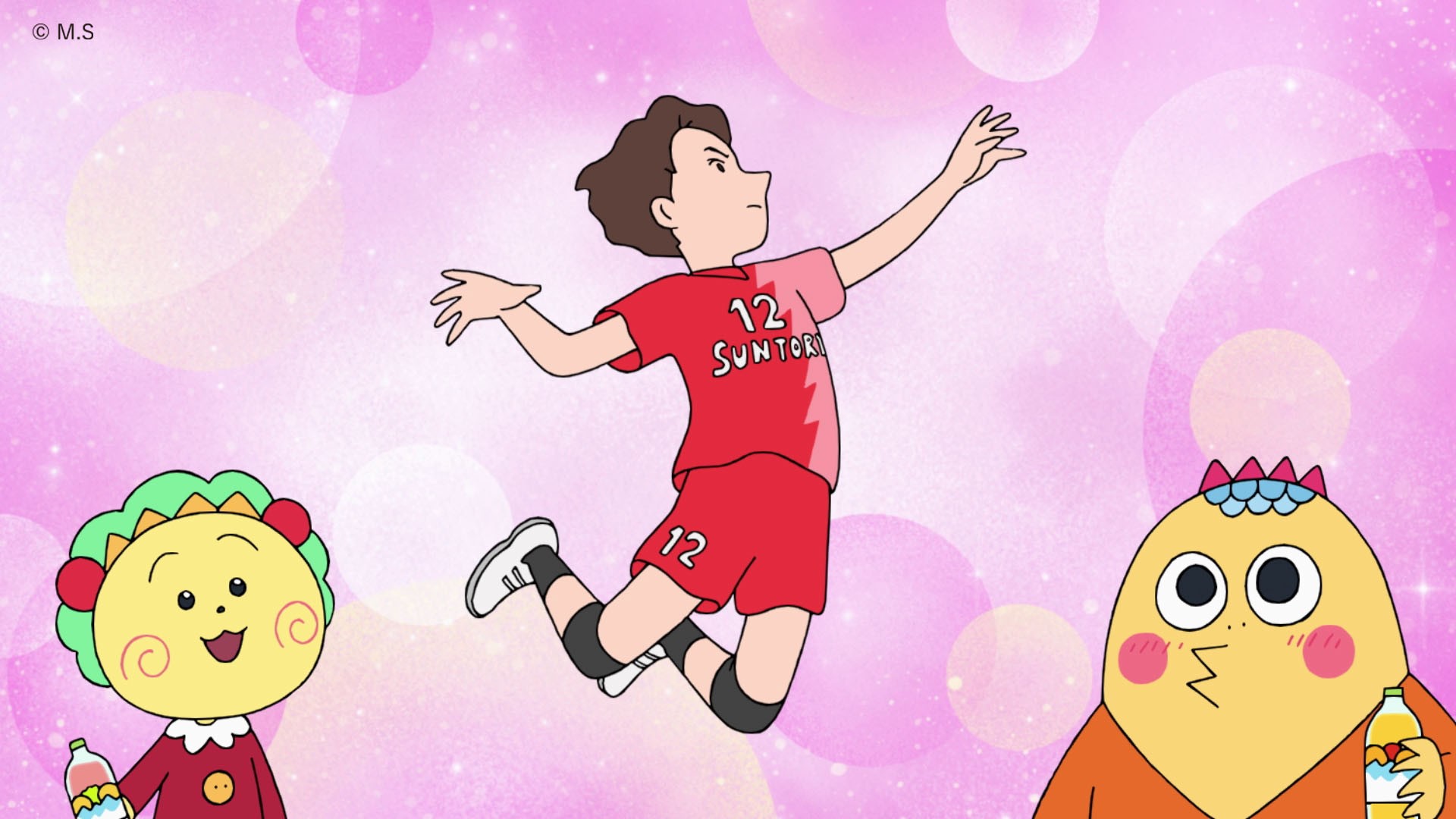 髙橋選手を“タカラン”と呼ぶコジコジに、「コジコジは僕の飛び方の師匠なんだ」と語る髙橋選手。何気ない会話の中で、コジコジは「4文字のほうがなにかときりっとするよ」と話し、「コジコジ、タカラン、オレマン、ピングレ」とリズムよく続けます。絶妙な“間”で繰り広げられる3人のやりとりや、アニメーションになっても爽やかな髙橋選手の力強いアタックなど、見どころたっぷりのCMに仕上がっています。