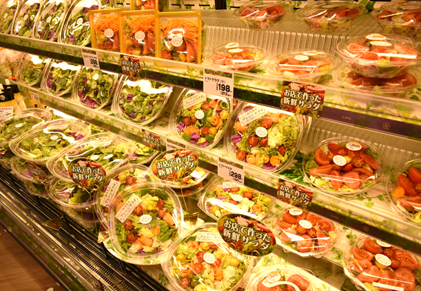 “惣菜売り場”・“冷凍食品売り場”・“酒売り場”・体に優しい素材や製法、健康や自然志向にあわせた商品を集めた“ビオラルコーナー”を1階から2階へ移設し、全体的に品ぞろえが大幅に拡大しました。さらに新店で好調の「お店で作った新鮮サラダ」や「魚屋さん・肉屋さんの手づくりおかず」などライフ最新コーナーを導入することで、お客様がワクワクするような魅力あるお店に生まれ変わりました。