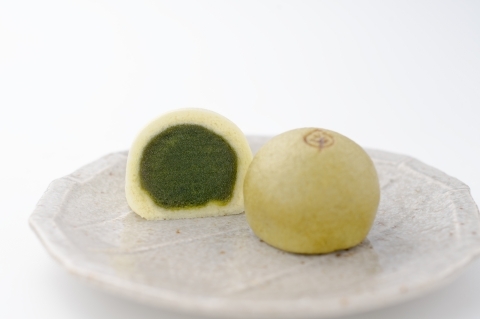 若葉の季節や新緑を思わせる、抹茶の薯蕷(じょうよ)まんじゅうです。抹茶が香る季節限定の商品です。
