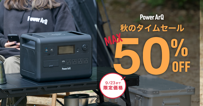 アウトドアだけでなく、災害対策グッズとしても人気の「PowerArQ(パワーアーク)」(加島商事株式会社)は、公式サイトにて秋のタイムセールを開催いたします。今回のセールでは人気のポータブル電源やポータブル冷蔵庫をはじめ、セール初登場の発電機やスマホホルダーなども対象。お得なこの機会を是非お見逃しなく!