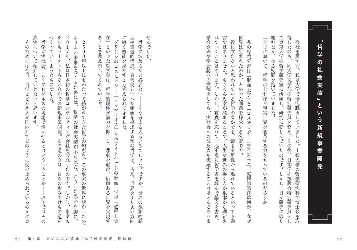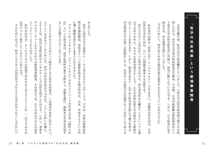 本書では、ビジネスの最前線で哲学を実践・活用してきた著者が、「哲学がビジネスに必要であるとか役に立つとは具体的にどういうことか」という問いに、企業での導入事例を交えながら答えていきます。