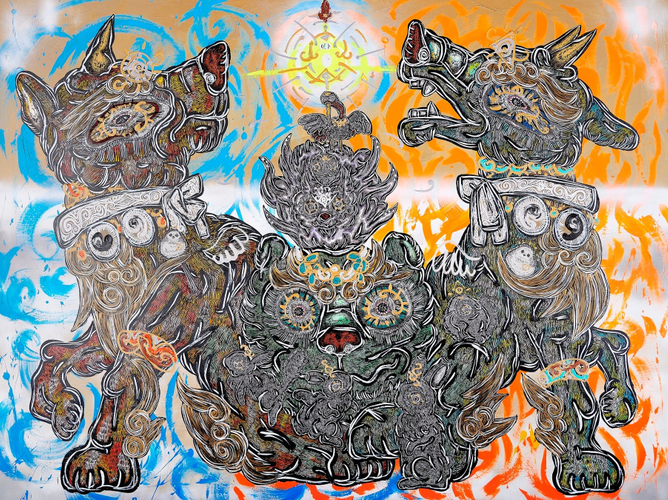 狛犬や龍などの神獣を描く現代アーティスト小松美羽(1984- )。