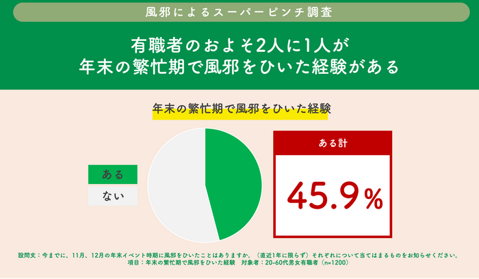 ■ビジネスパーソンのおよそ2人に1人(45.%)が年末繁忙期に風邪を引いた経験あり!