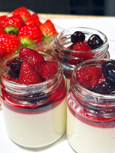 朝の光が差し込む頃、ふわっととろけるホワイトチョコプリンに、キュンと甘酸っぱいベリーソースをそっと一匙。
