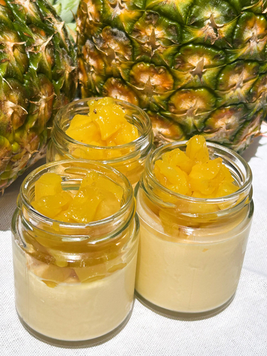 隠し味にパイナップルリキュールを加え、 南国の爽やかな香りとほのかな甘みを演出したとろける食感のプリン。