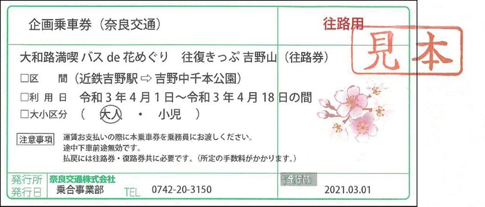 【利用区間】近鉄吉野駅~吉野中千本公園(往復分)