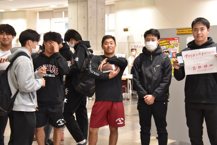 アメリカンフットボール部はホール入り口前で待機