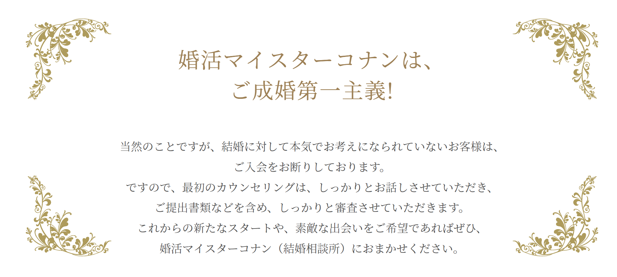 婚活や結婚相談所をお探しの方は是非、「婚活マイスターコナン」にお問い合わせください。