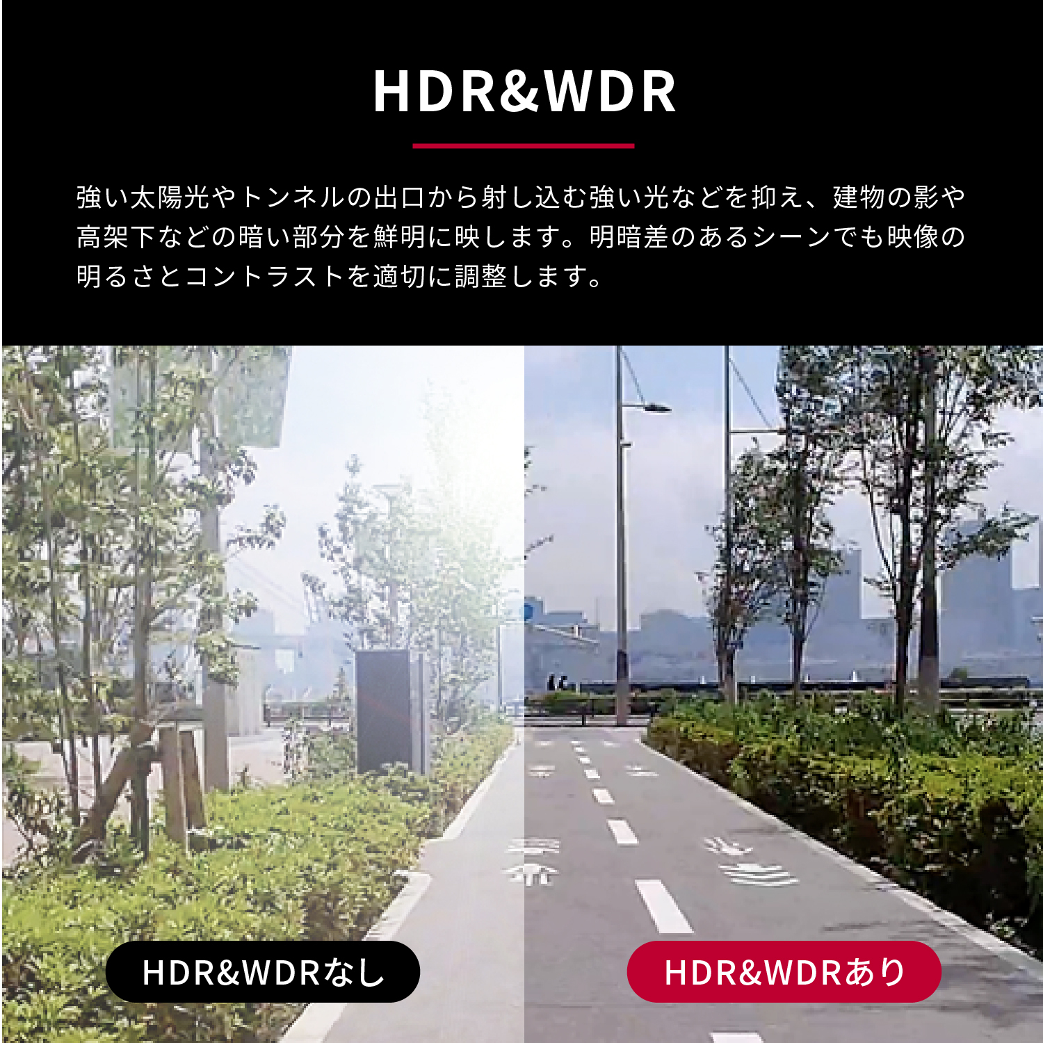 ● HDR・WDR機能により、白飛びや黒つぶれを防ぎ、夜間の視認性も向上します。