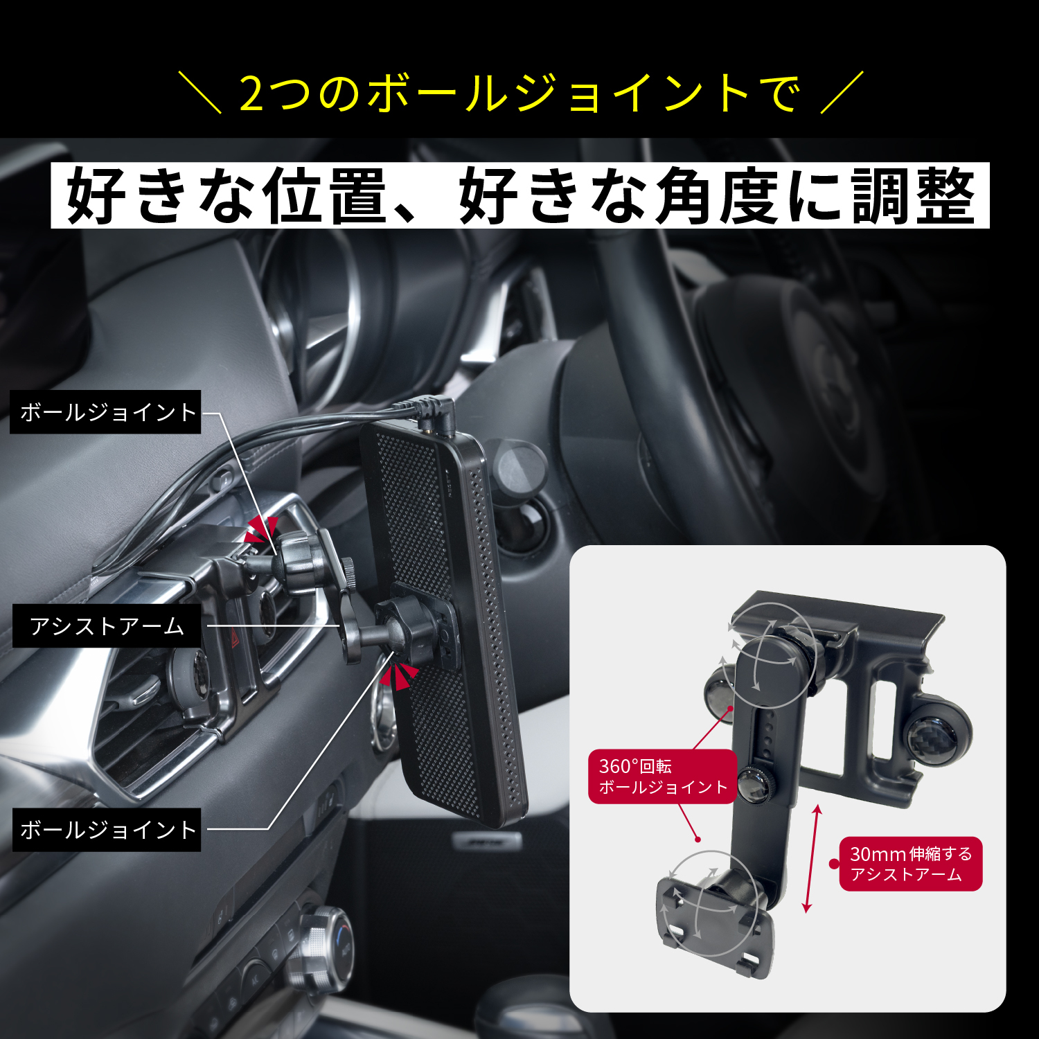 ● 伸縮可能なアシストアームと2つのボールジョイントにより、モニターの位置や角度を自由に調整できます。