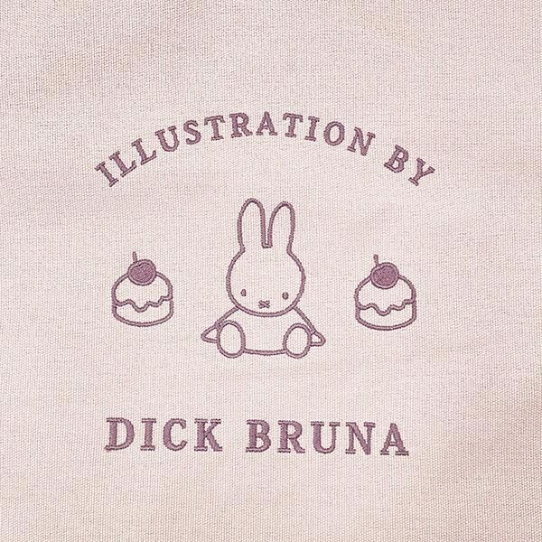 ミッフィー ドルチェシリーズのトートバッグには色違いのラインナップもございます。こちらはピンクのお色です。色ごとにミッフィーのデザインが変わっているところもポイントです。ピンクのお色は、ミッフィーの左右にケーキが並べられています。シンプルなのにどこかチャーミングなデザインです。