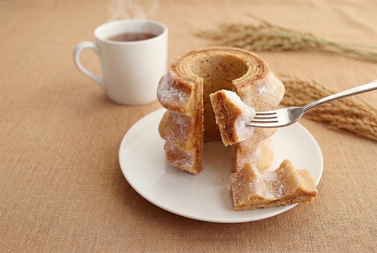 愛知県産の西尾抹茶と自家栽培の生米粉100%を使用した、ソフトタイプのグルテンフリーバウムクーヘンです