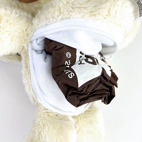 でも、ちゃんと仕事もしてくれます♪マスコットのサイドにファスナーがあり、開くと背中の部分にバッグが収納できちゃいます。