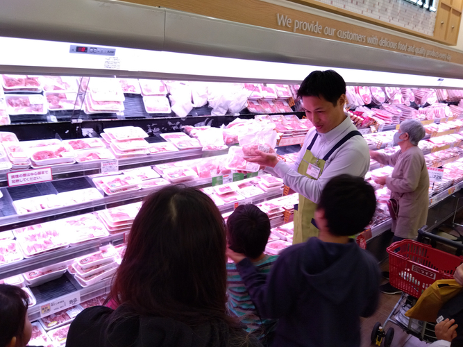 地球温暖化や海洋プラスチックごみ問題などについて学ぶオリジナル冊子「いっしょに未来を考える。の本」を用いて、環境問題について学んだうえで、その対策としてライフで実際に行っている資源リサイクルや省エネの取組みなどを店内やバックヤードを巡りながら見ていただきました。