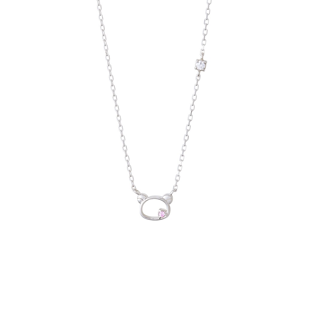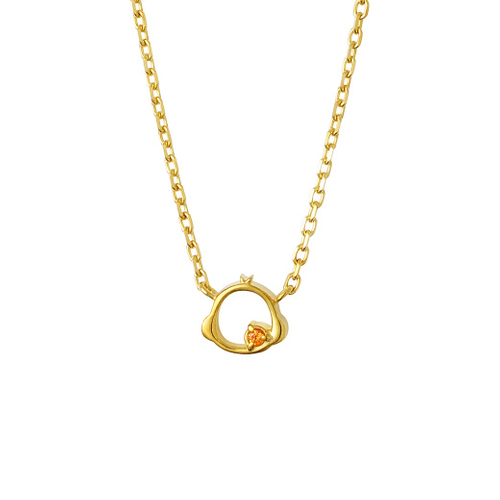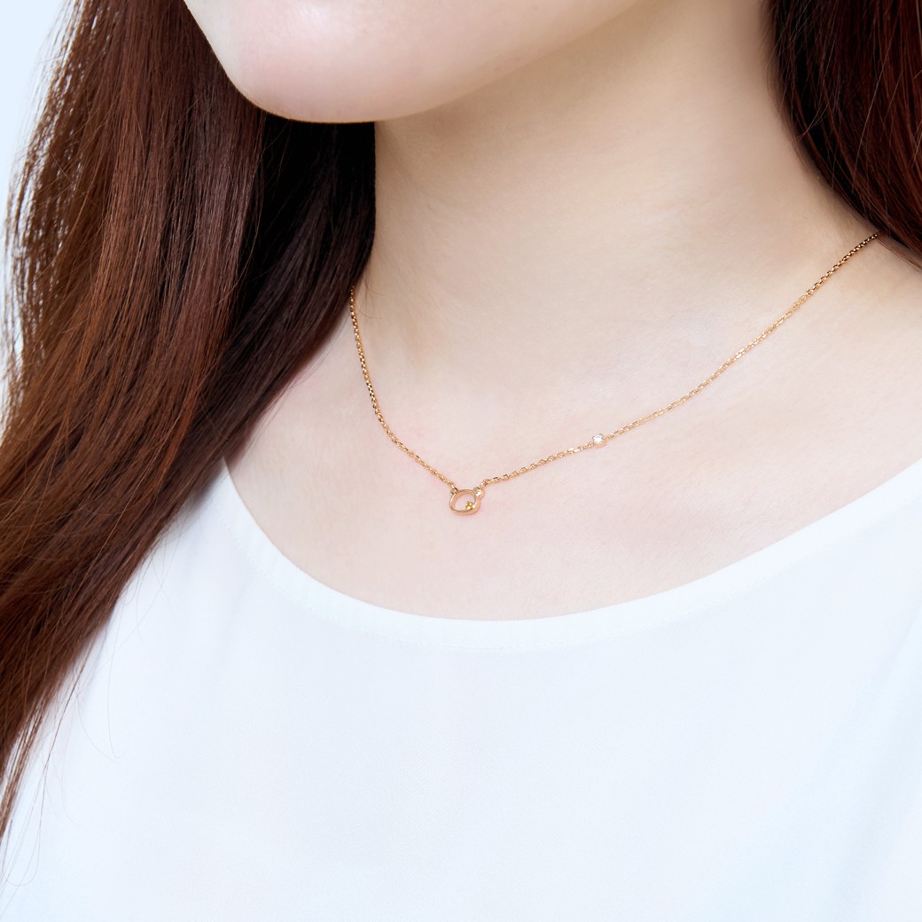 ころんとしたフェイスモチーフに、チェーンの途中にきらりと輝くストーンがアクセント。