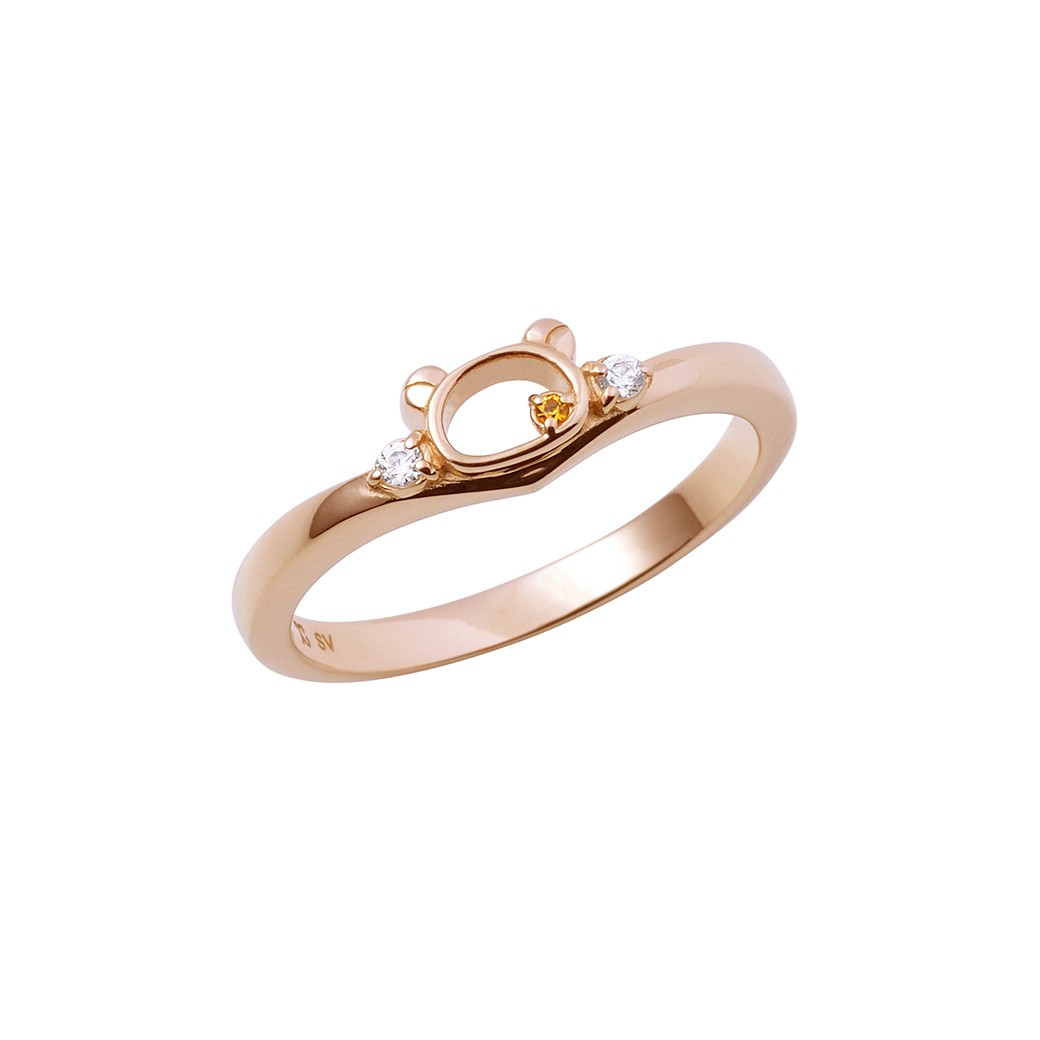 すっきりとしたV字フォルムに、コリラックマのシルエットとイメージカラーのストーンをセットしました。ふんわり優しい世界観と遊び心をぎゅっと閉じ込めた、大人可愛いデザインです。