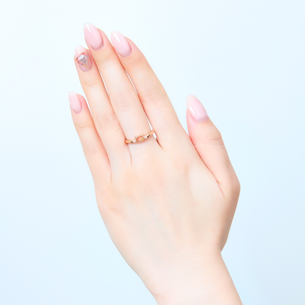 すっきりとしたV字フォルムに、リラックマのシルエットとイメージカラーのストーンをセットしました。ふんわり優しい世界観と遊び心をぎゅっと閉じ込めた、大人可愛いデザインです。