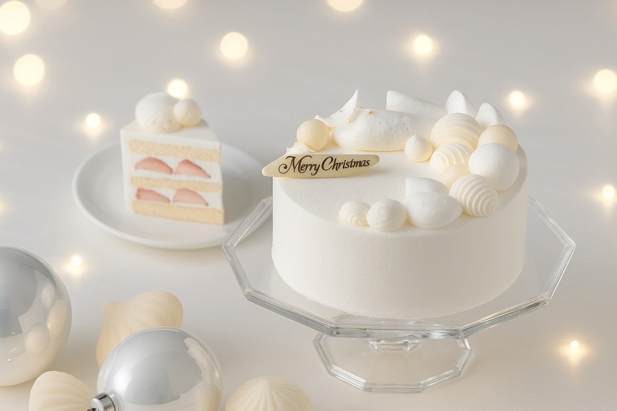 白銀の世界に輝く、上質なひとときのための一品。幻想的な雪景色の煌めきを映し出すかのような洗練された装いのスペシャルなクリスマスケーキ。大分県産「ベリーツ」の甘酸っぱい芳香と、繊細な口溶けが調和し聖夜を優雅に彩ります。