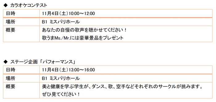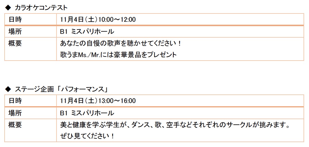 ※ 11/5(日)にミスパリホールで開催されるイベントは入場に制限があります