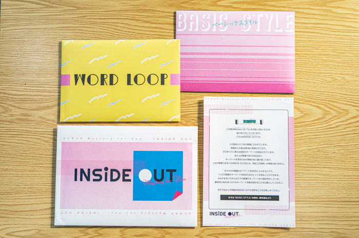 いくつかの階層に分けられた、とにかくたくさんの謎。 階層は封筒毎に管理されており、そのすべてに異なる固有のキーワードが設定されています。ひらめきの爽快感と、徐々に全体像が見えてくるわくわく感を感じながら、INSiDE OUTのキーワードへと辿りつきましょう。