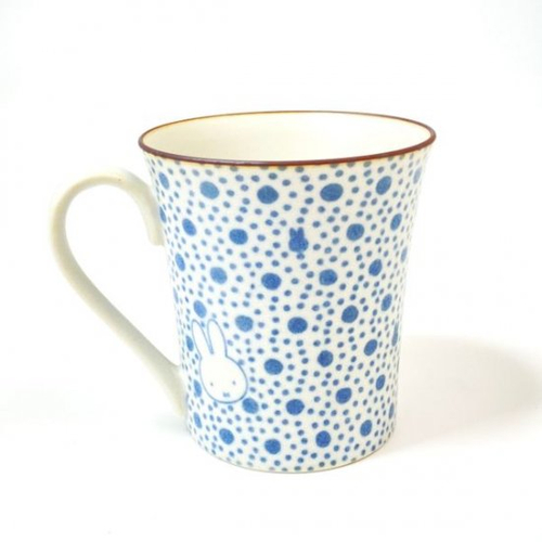 こちらは、霞小紋のマグカップです。大小のドットのようなデザインで、レトロモダンな雰囲気♪よく見ると、小紋の一つがミッフィーのお顔のシルエットになっていますよね♡