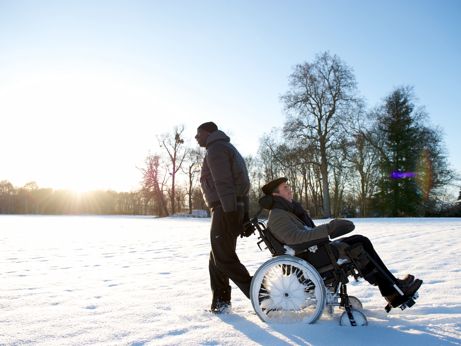 事故で全身麻痺となり、車いす生活を送る富豪と、図らずして介護役に抜擢されたスラム出身の黒人青年。共通点はゼロ。高級住宅地とスラム、ショパンとクール&ザ・ギャング、超高級スーツとスウェット、洗練された会話と下ネタ、車いすとソウル・ミュージックに乗ってバンプする身体―。二人の世界は衝突し続けるが、やがて互いを受け入れ、とんでもなくユーモアに富んだ最強の友情が生まれていく。