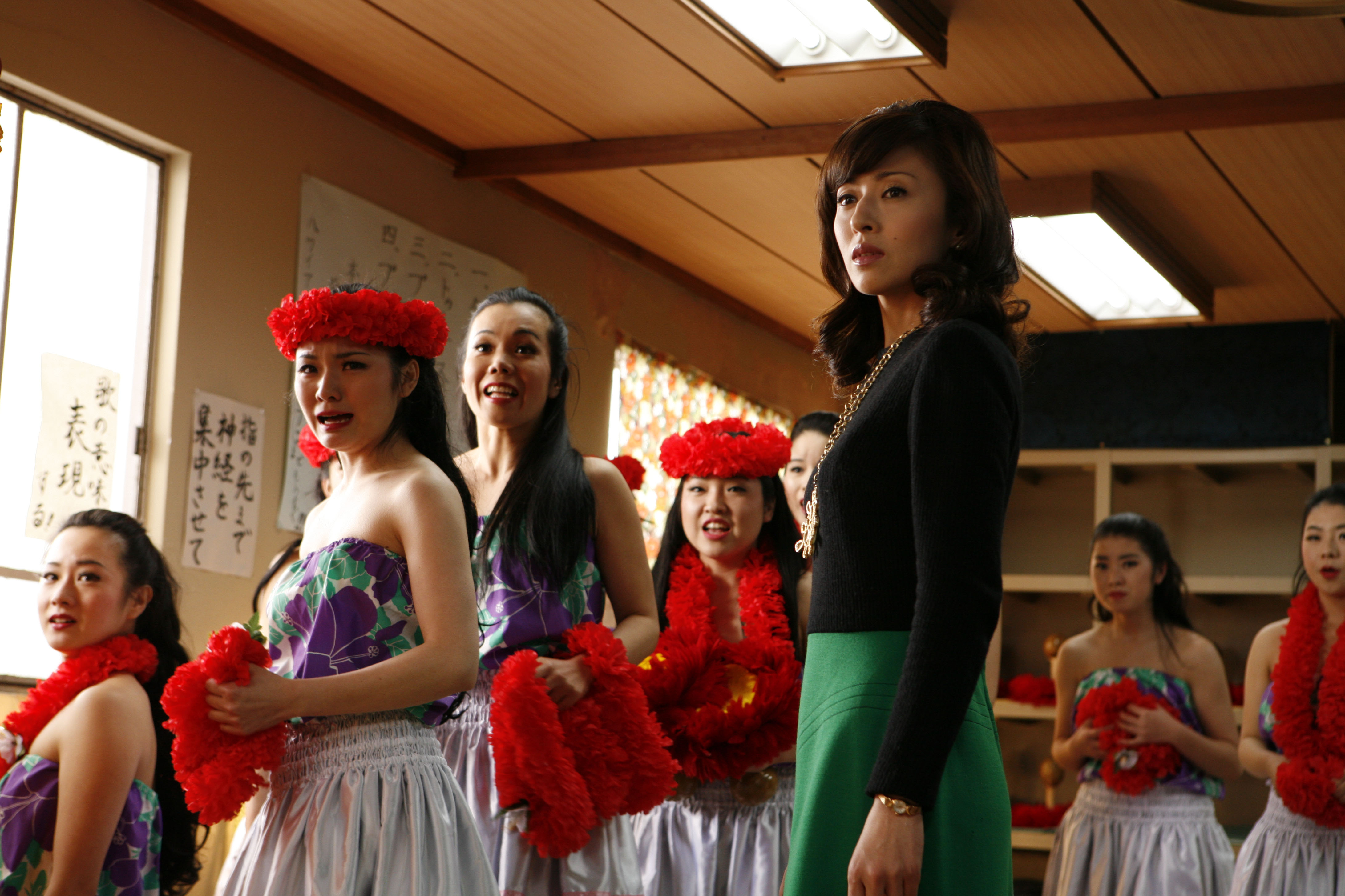 【ストーリー】昭和40年、福島県いわき市の炭鉱町。時代は石炭から石油へと変わり、閉山が相次ぎ、町は先細りの一途をたどっていた。そこで、起死回生のプロジェクトとして豊富な温泉を利用したレジャー施設“常磐ハワイアンセンター”が計画された。そして、目玉となるフラダンスショーのダンサー募集が地元の少女たちに対して行われた。この町から抜け出すチャンスだと考えた早苗は紀美子を誘って説明会へと向かう。説明会では、セクシーな衣装で踊る姿に、大半の応募者が逃げ出し、残ったのは紀美子(蒼井優)と早苗の他には初子と小百合(山崎静代)のわずか4人だけだった。そんな中、元SKD(松竹歌劇団)のダンサー平山まどか(松雪泰子)がフラダンスの教師として東京から招かれる。しかし、とある事情で渋々やって来たまどかは、教える相手がズブの素人と分かり、完全にやる気を失ってしまう…。