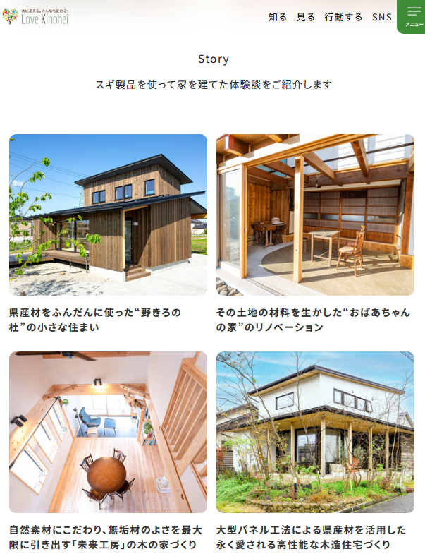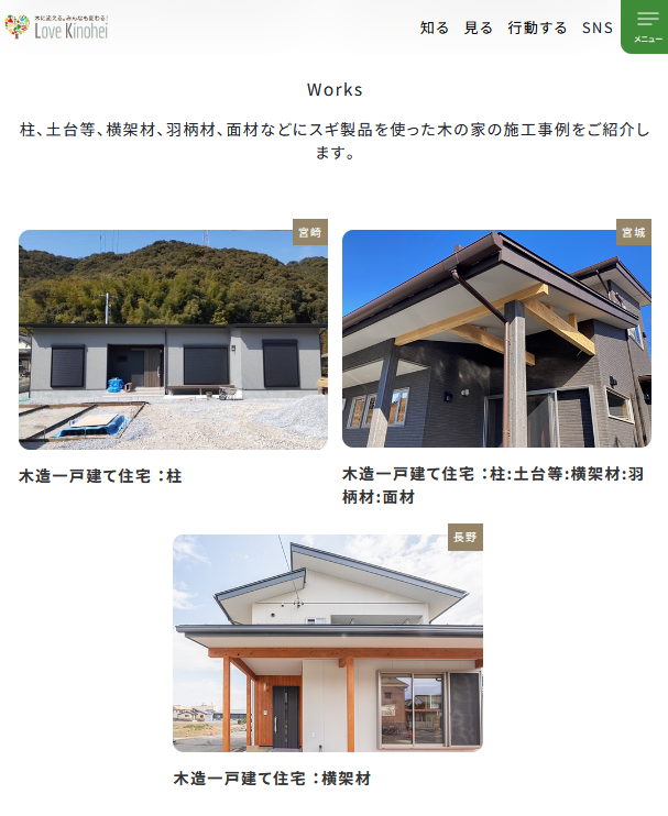 全国で一般製材業、木材・木製品製造販売業の約14,500社が加盟する一般社団法人 全国木材組合連合会(会長:菅野 康則)は、令和6年度林野庁補助事業として花粉症対策木材利用促進支援事業を実施しました。そこで、施工された木造住宅の建築事例やスギ製品を使った木造住宅の取材記事や動画、また木造住宅についてのよくある質問等をまとめ、「木のある暮らし・木の街づくり応援WEBマガジン LOVE KINOHEI(ラブキノヘイ)」へ掲載しました。