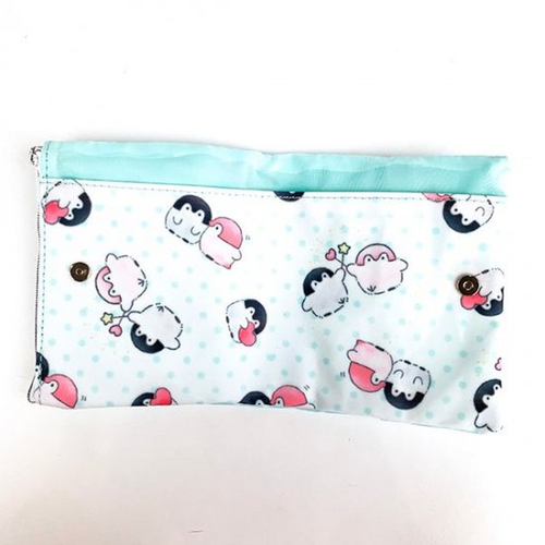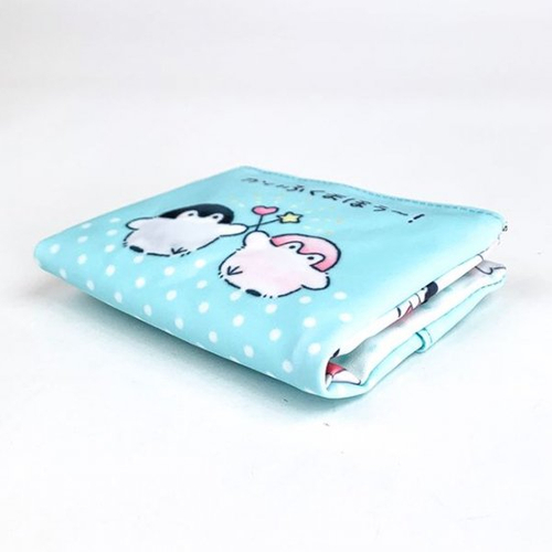 明るいブルーの生地に、コウペンちゃんのキュートなデザインのマスクポーチです。2つ折りでコンパクトに収納でき、バッグに常備するのにも便利♪