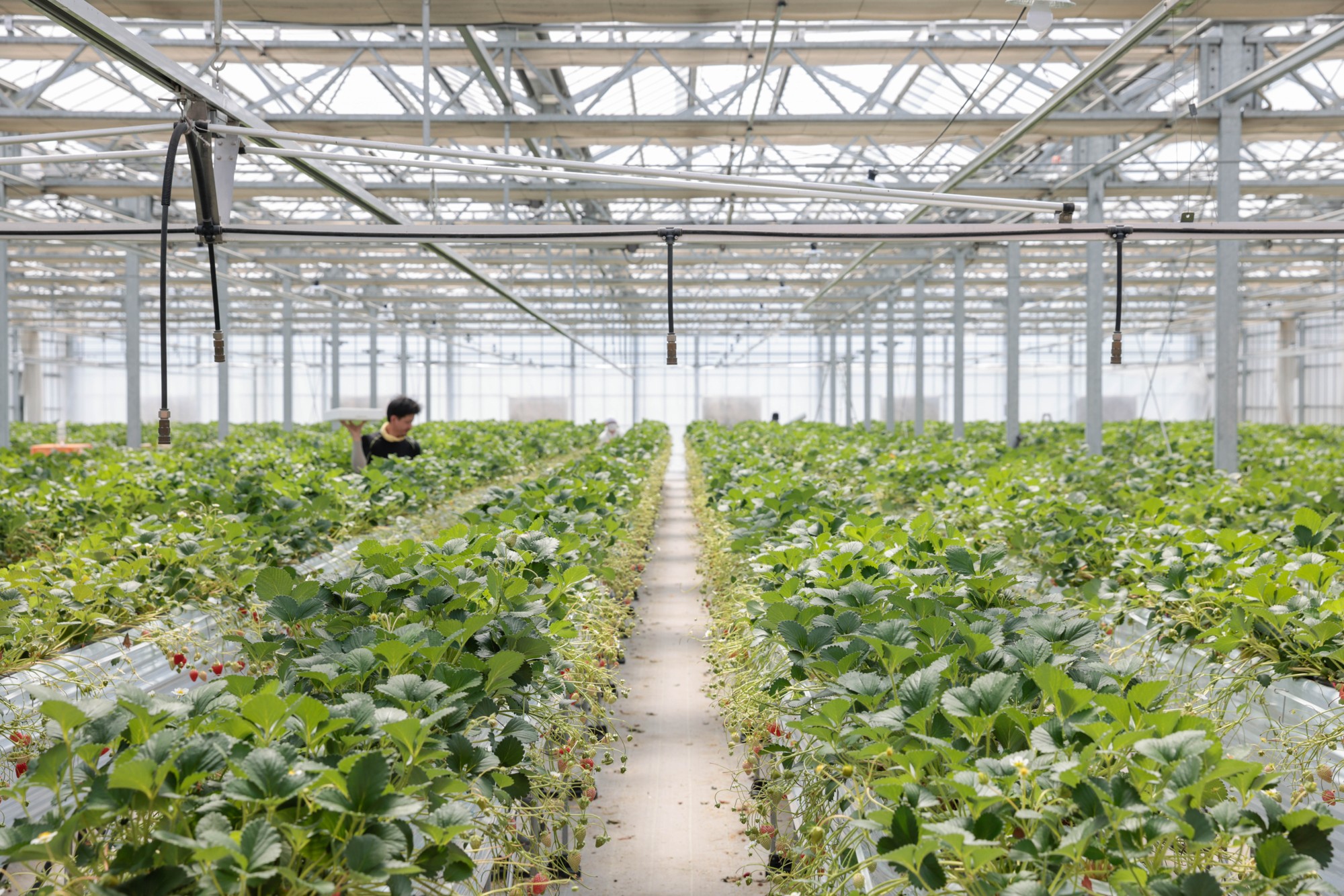 同農園では、温泉熱を活用した栽培を行っており、ハウス内の温度を均一に保つことで、生育環境の安定化を実現しています。一般的な暖房と異なり熱ムラが少なく、いちごの品質にも良い影響を与えています。