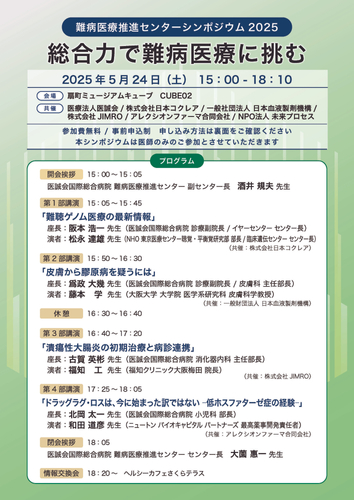 シンポジウム名:難病医療推進センターシンポジウム2025 総合力で難病医療に挑む