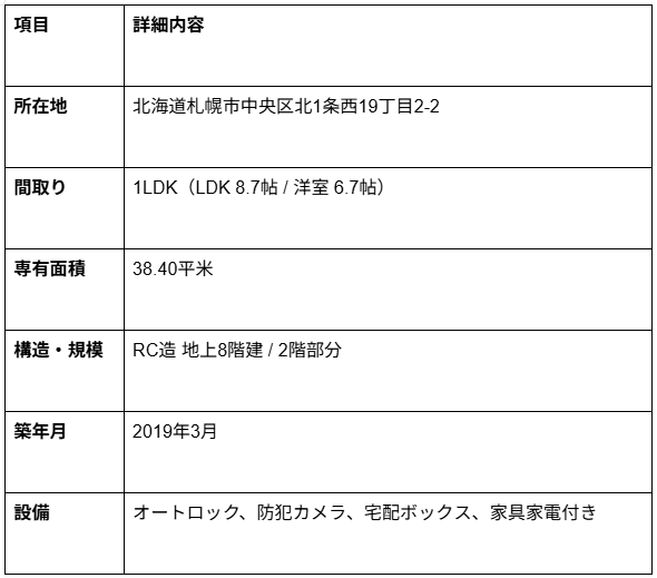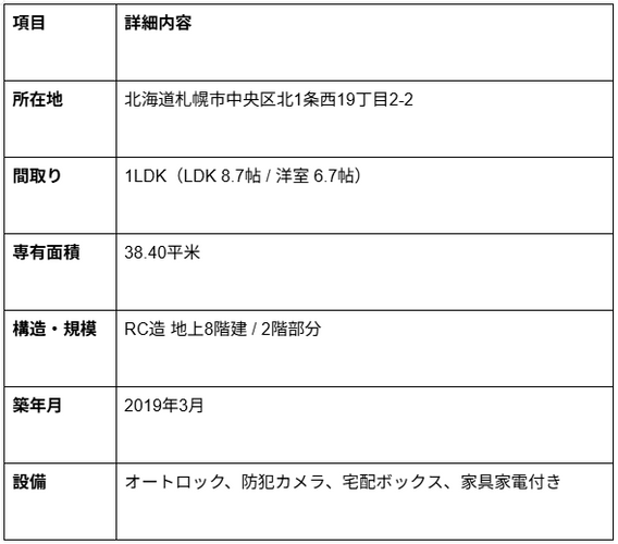 本物件は、都心部かつ、札幌の文化的な薫りが漂う「北海道立近代美術館」の近くに位置しています。2019年竣工という新築時の高いクオリティを維持した築浅マンションであり、居住性と収益性の高さをともに兼ね備えた一室です。