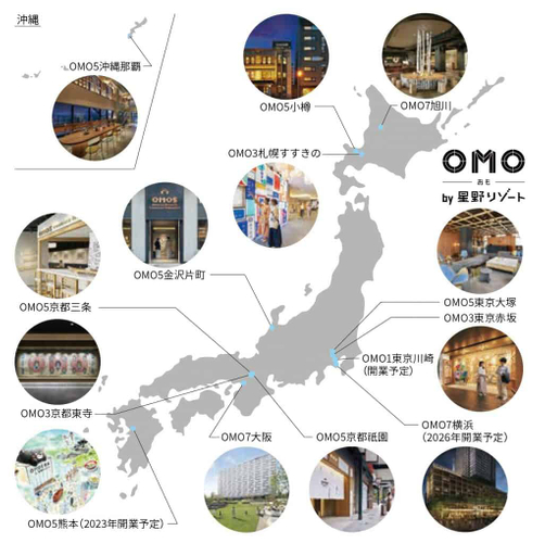 「OMO」は星野リゾートが全国に展開する都市ホテルブランドです。ブランドコンセプトは「寝るだけでは終わらせない、旅のテンションを上げる都市ホテル」。地域と一体となって街を楽しみ尽くす旅を追求しています。全てのOMOで、街歩きをサポートするGo-KINJOサービスを展開。全国各地の11施設から「都市観光」の楽しさを発信していきます。
