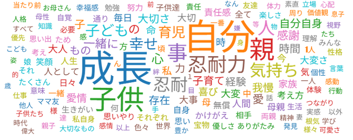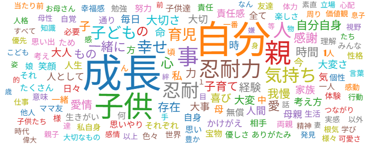 “自分自身の成長”、“忍耐力・我慢強さ”、“子どもから受ける愛情”等が多く挙げられました。