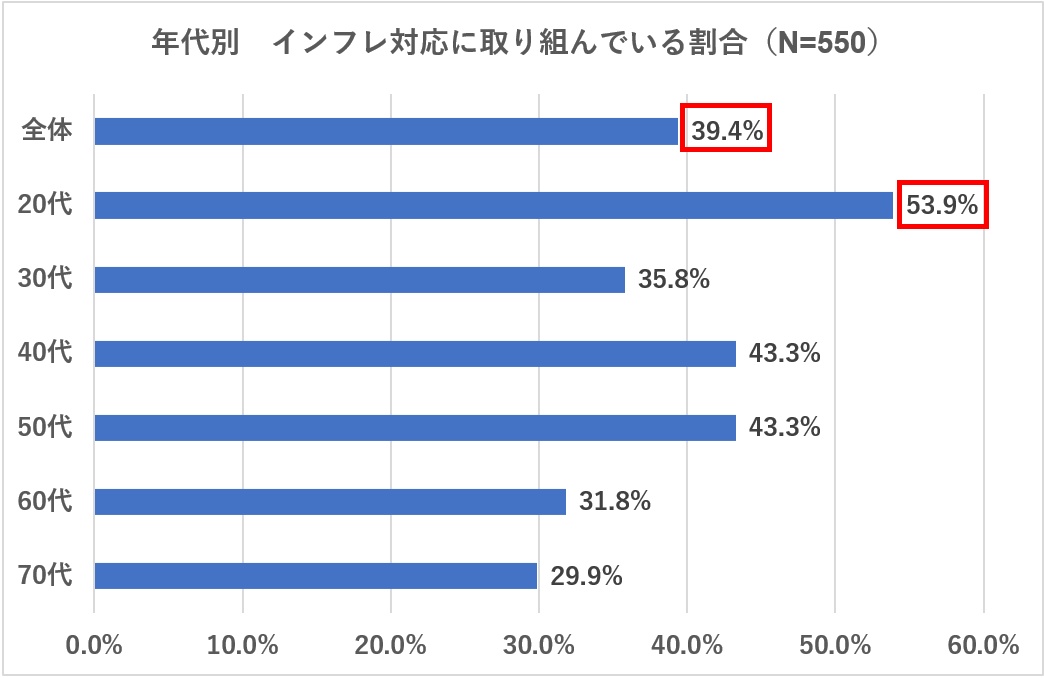 ● インフレへの対応率は20代が最多で53.9%